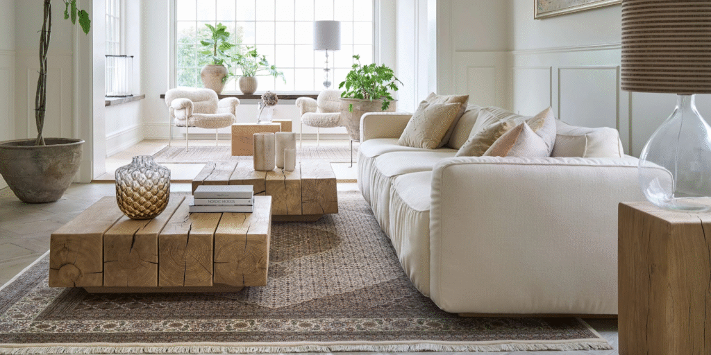 Rugs form the foundation of a living space’s visual rhythm. To achieve balance, ensure the front legs of sofas and chairs rest comfortably on the rug, anchoring the area while maintaining open visual flow. Designers highlight this principle for proportion and spatial harmony. Proper alignment makes conversation areas feel centered and cozy, turning furniture into a unified whole rather than scattered elements. The result is a polished, intentional aesthetic where design and comfort intersect.