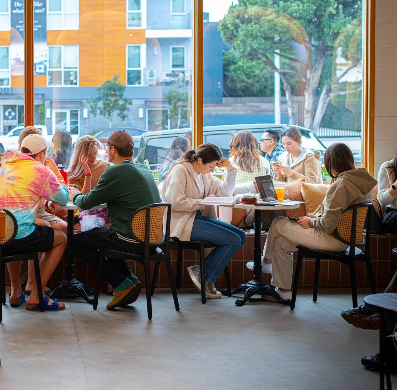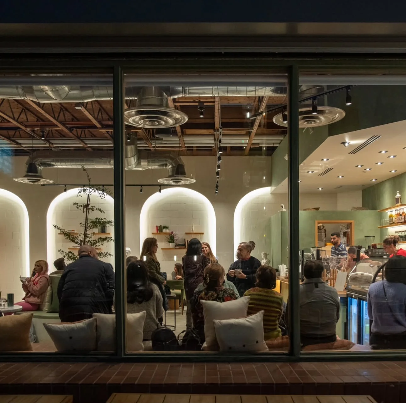 Pantheon is the coffee shop we designed last year, and it’s thriving as a popular and successful space. We envisioned it as a place for people to relax, enjoy their coffee, and use as a productive workspace.