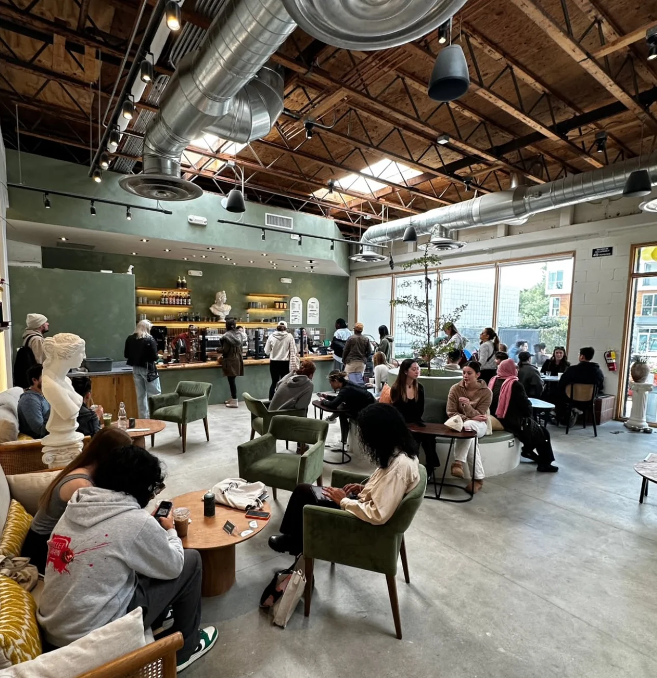 To align with this vision, we chose a muted green for the interior. This color was selected not only for its connection to the Pantheon and the Greek gods but also for its psychological benefits. Research has shown that green can enhance creative performance by promoting a sense of growth and innovation. A study published in the Personality and Social Psychology Bulletin even found that brief exposure to green can stimulate creative thinking, making it an ideal choice for a space that encourages relaxation and productivity.